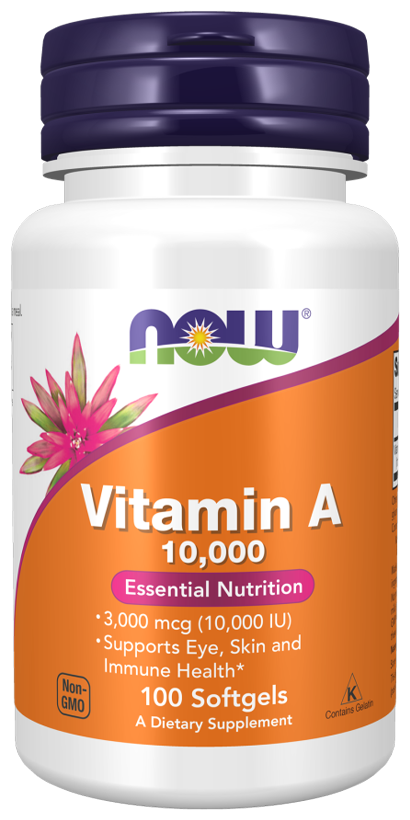 NOW Vitamin А 10,000 Softgels, Витамин А 10000 МЕ, 100 капсул